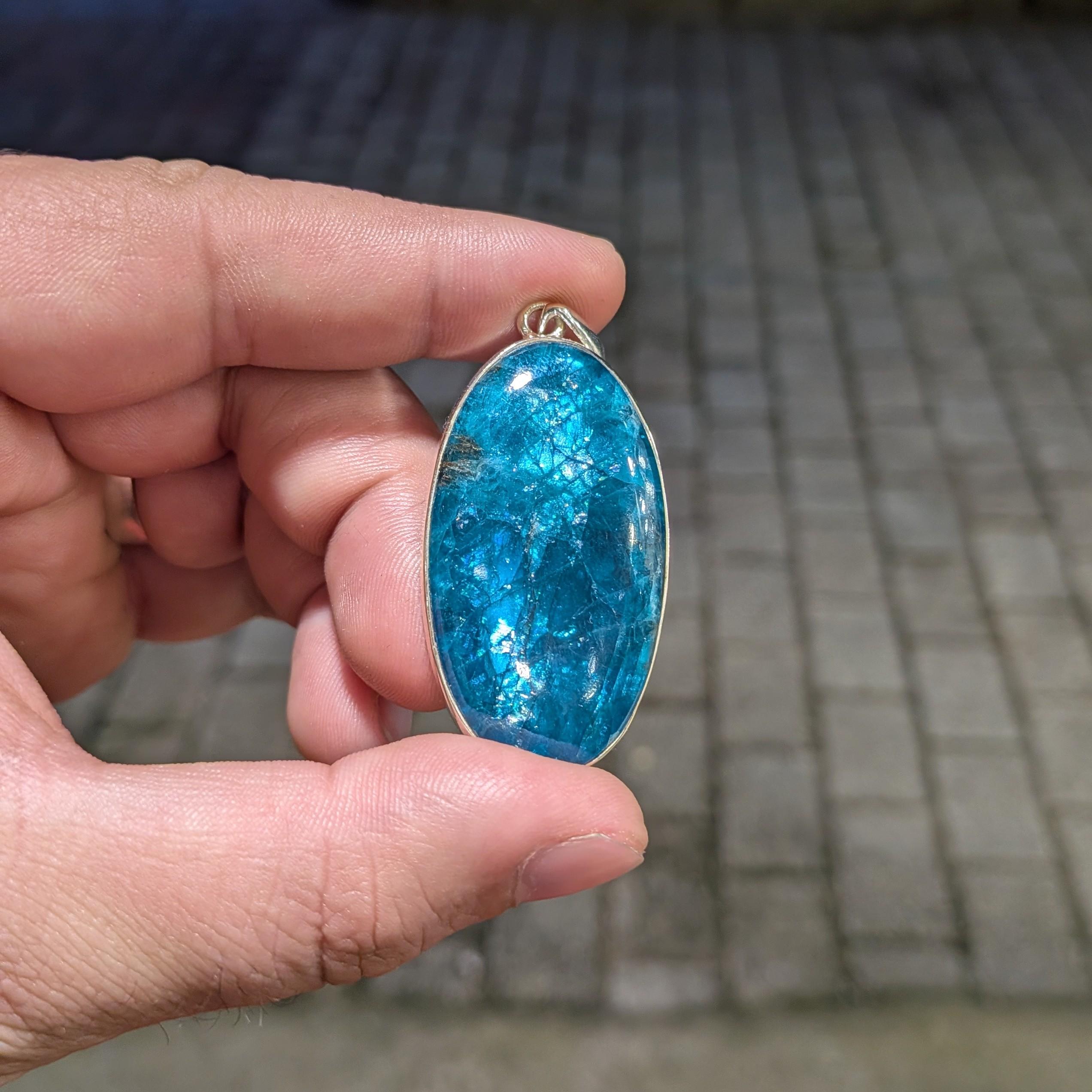 Pendentif en Apatite Bleue, Qualité Extra (argent 925)