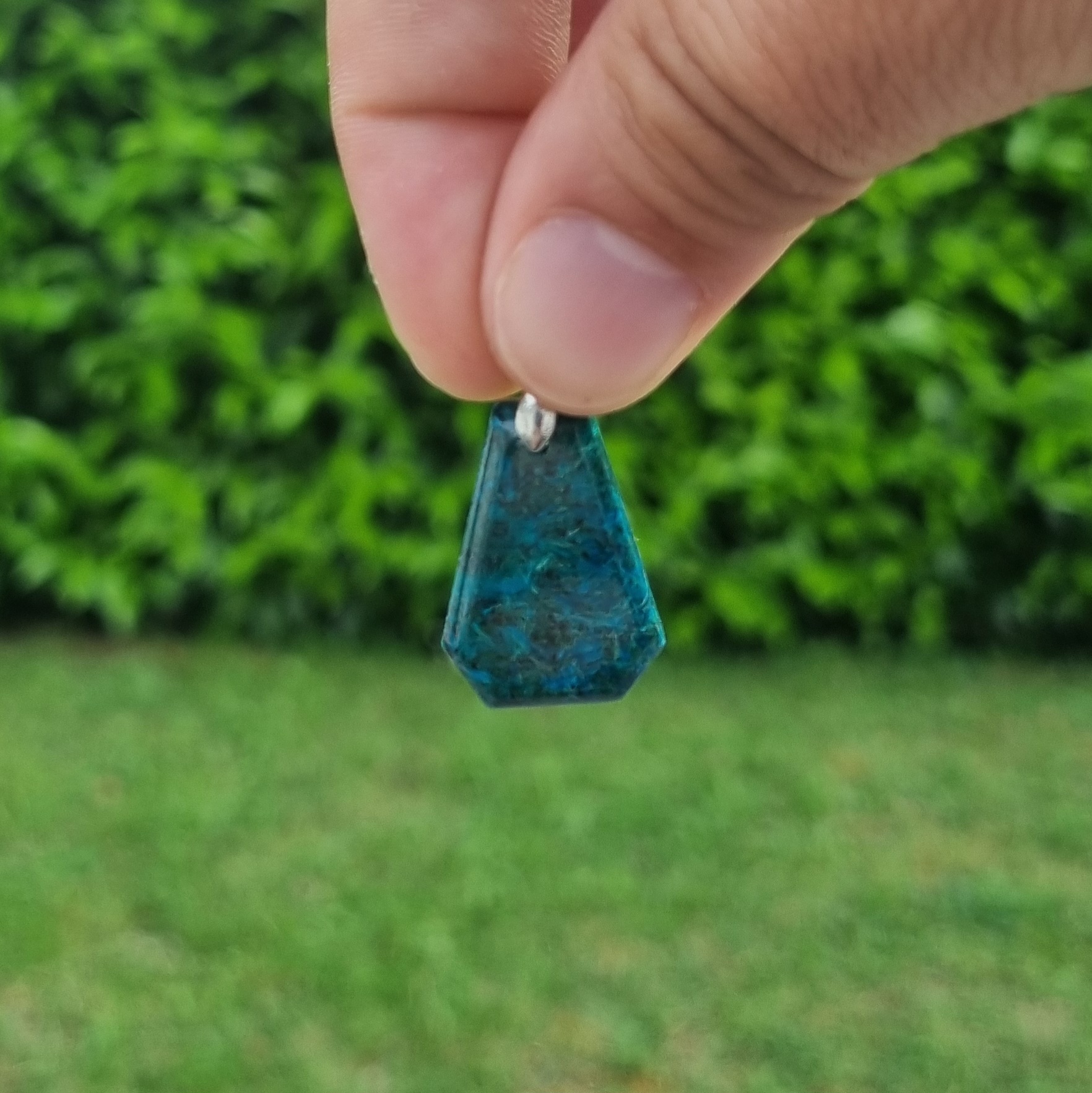 Offrez-vous un bijou d’exception avec ce pendentif en chrysocolle de qualité extra, une pièce unique aux teintes profondes de bleu et de vert. Ce pendentif de 2 cm révèle toute la beauté naturelle de la pierre, taillée avec soin pour préserver son énergie vibratoire.
