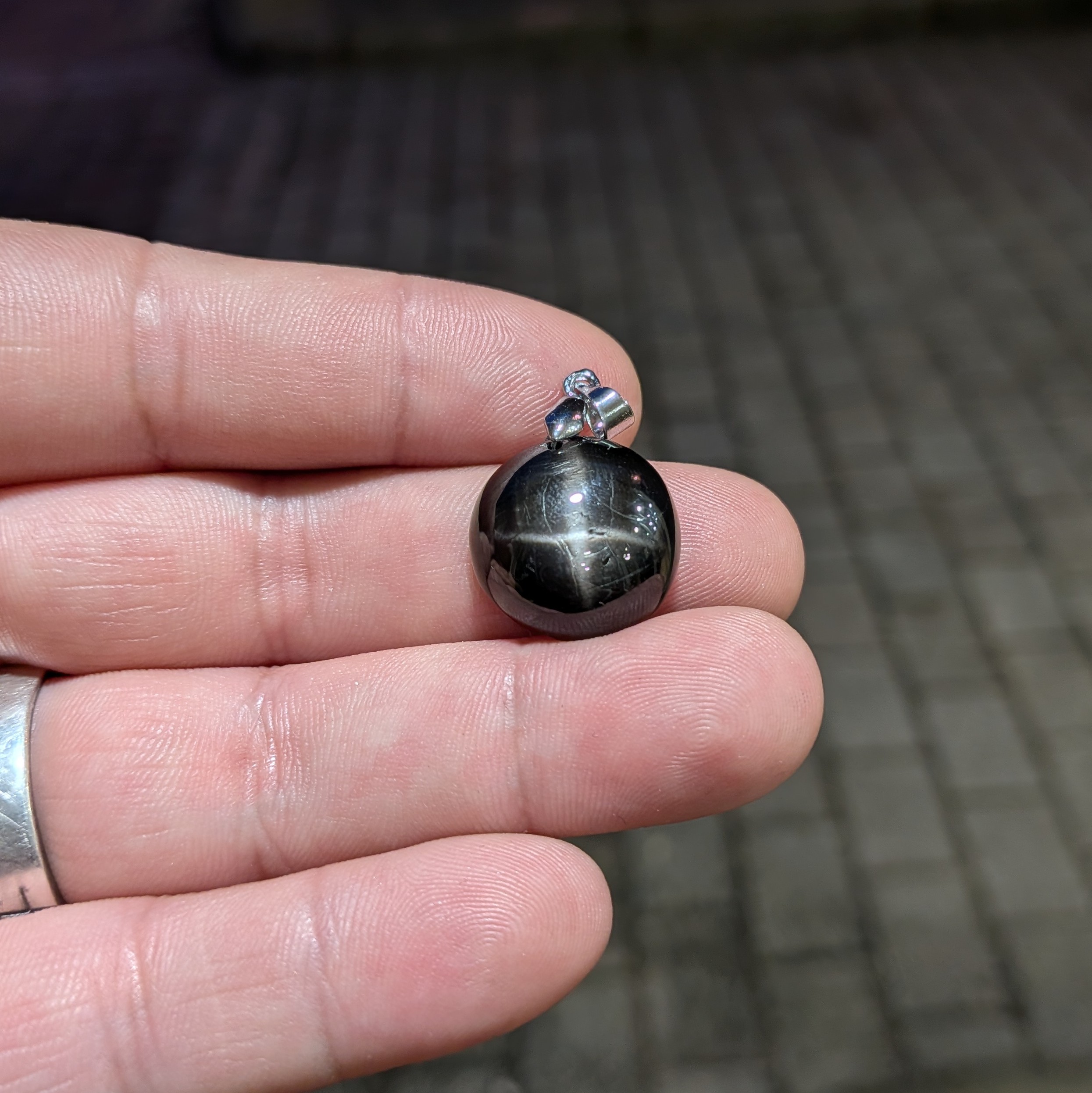 Ce pendentif en spinelle étoilé de qualité extra présente un phénomène rare et recherché : une étoile lumineuse appelée « astérisme » qui se révèle à la surface de la pierre selon l’angle de la lumière. Ce jeu d’éclat naturel, discret mais puissant, donne à la pierre une présence très particulière, à la fois profonde, mystérieuse et parfaitement maîtrisée.